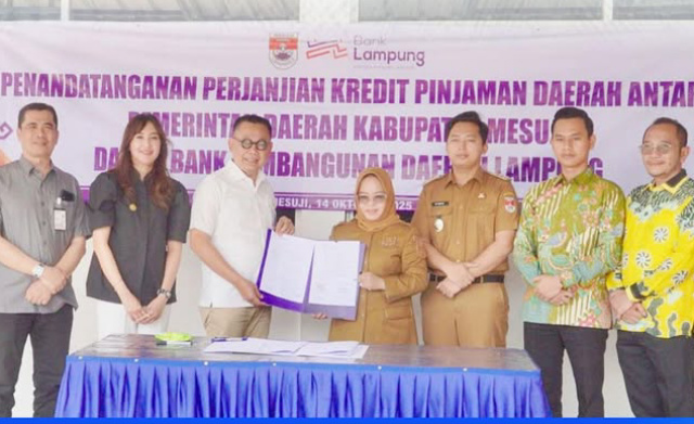 Pinjaman kredit daerah ini dilakukan dengan penandatangan perjanjian kredit daerah, dilakukan di kantor Bupati Mesuji, Selasa (14/10/2025).