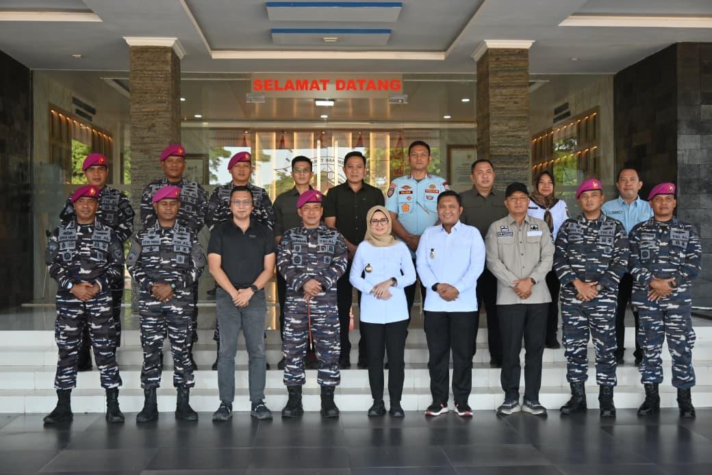 Komandan Brigade Infanteri 4 Marinir/BS (Danbrigif 4 Mar/BS), Kolonel Marinir Supriadi Tarigan, S.I.P., M.M., menerima kunjungan silaturahmi Bupati Pesawaran, Hj. Nanda Indira B, SE., M.M., beserta rombongan di Markas Komando Brigif 4 Mar/BS, Piabung, Kec. Padang Cermin, Kab. Pesawaran Lampung, Rabu (15/10/2025).