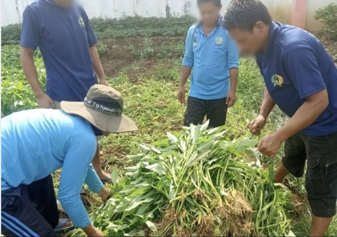 Lembaga Pemasyarakatan (Lapas) Kelas IIB Kotaagung terus perkuat dukungan terhadap program ketahanan pangan melalui pemberdayaan warga binaan dengan panen kangkung di lahan hortikultura dalam area Lapas.