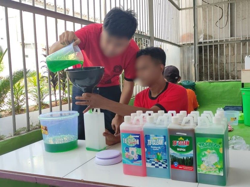 Program pembinaan kemandirian di Lembaga Pemasyarakatan (Lapas) Kelas IIA Metro terus menunjukkan hasil positif. Melalui berbagai inovasi dan kerja keras, para Warga Binaan kini berhasil memproduksi sejumlah produk rumah tangga yang berkualitas, seperti sabun pencuci piring, sabun cuci pakaian, serta pembersih dan pengharum lantai.