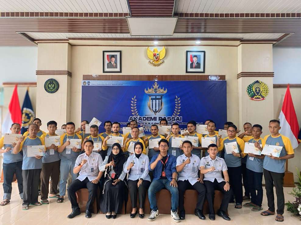 Sebanyak 26 peserta Akademi Passai resmi menerima sertifikat pelatihan Sulam Tapis Modern dari Lembaga Pelatihan Kerja (LPK) Adian Tapis dalam acara penutupan yang berlangsung di Aula Kegiatan Kerja Lapas Kelas I Bandar Lampung.