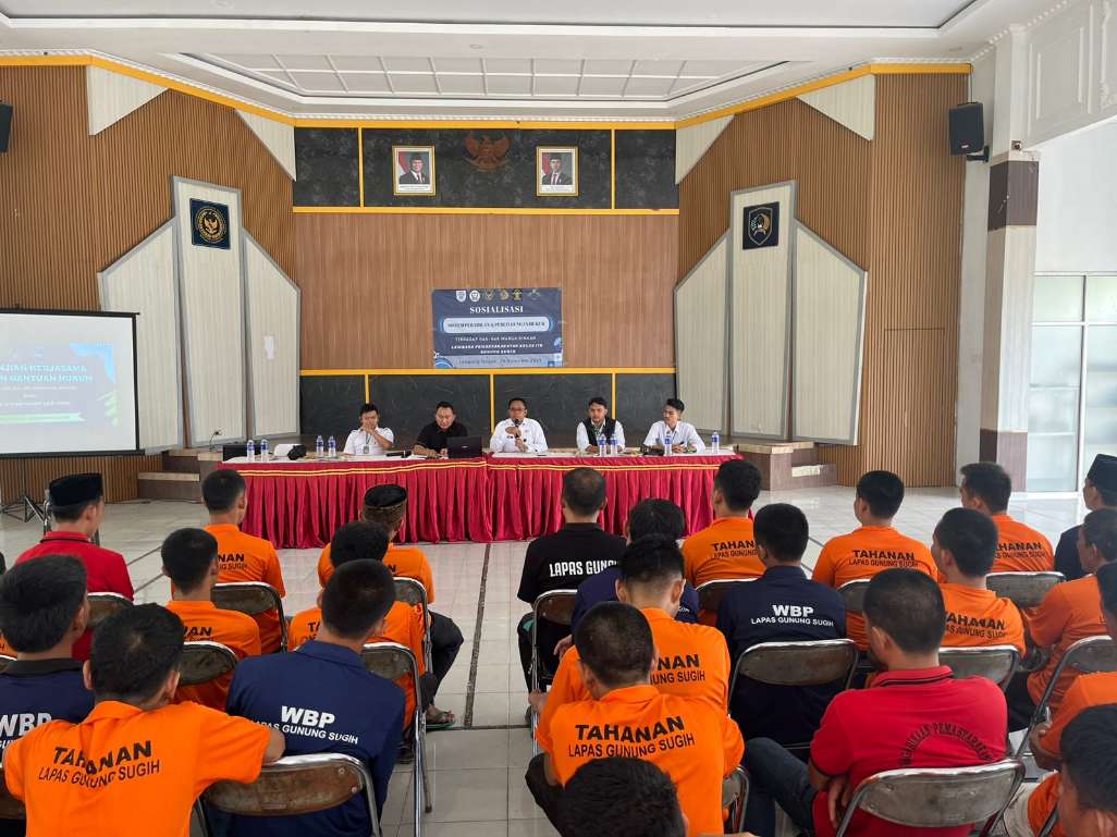 Lapas Kelas IIB Gunung Sugih melaksanakan penandatanganan perjanjian kerja sama dan sosialisasi bersama LBH Bow & Partner Law Firm pada Rabu (26/11). Kegiatan yang berlangsung di Aula Lapas ini diikuti oleh Warga Binaan dan Tahanan sebagai langkah nyata dalam memperluas akses pendampingan hukum di lingkungan pemasyarakatan.