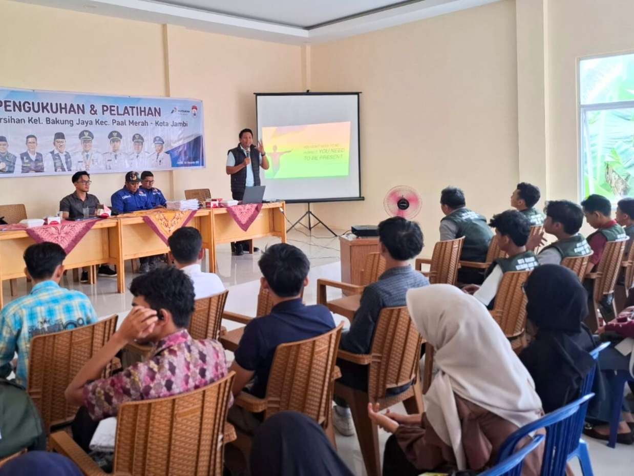 Jambi — Upaya mendorong pengelolaan lingkungan permukiman yang berkelanjutan terus diperkuat melalui kolaborasi antara perusahaan, pemerintah, dan masyarakat. Pertamina Patra Niaga Regional Sumatera Bagian Selatan (Sumbagsel) melalui Aviation Fuel Terminal (AFT) Sultan Thaha bersama _local hero_, Zalman Kurniawan menginisiasi pembentukan Duta Kebersihan Kelurahan Bakung Jaya sebagai bagian dari perluasan Program Kampung Elok Batuah pada Sabtu (6/12/2025) di Kantor Keluran Bakung Jaya.