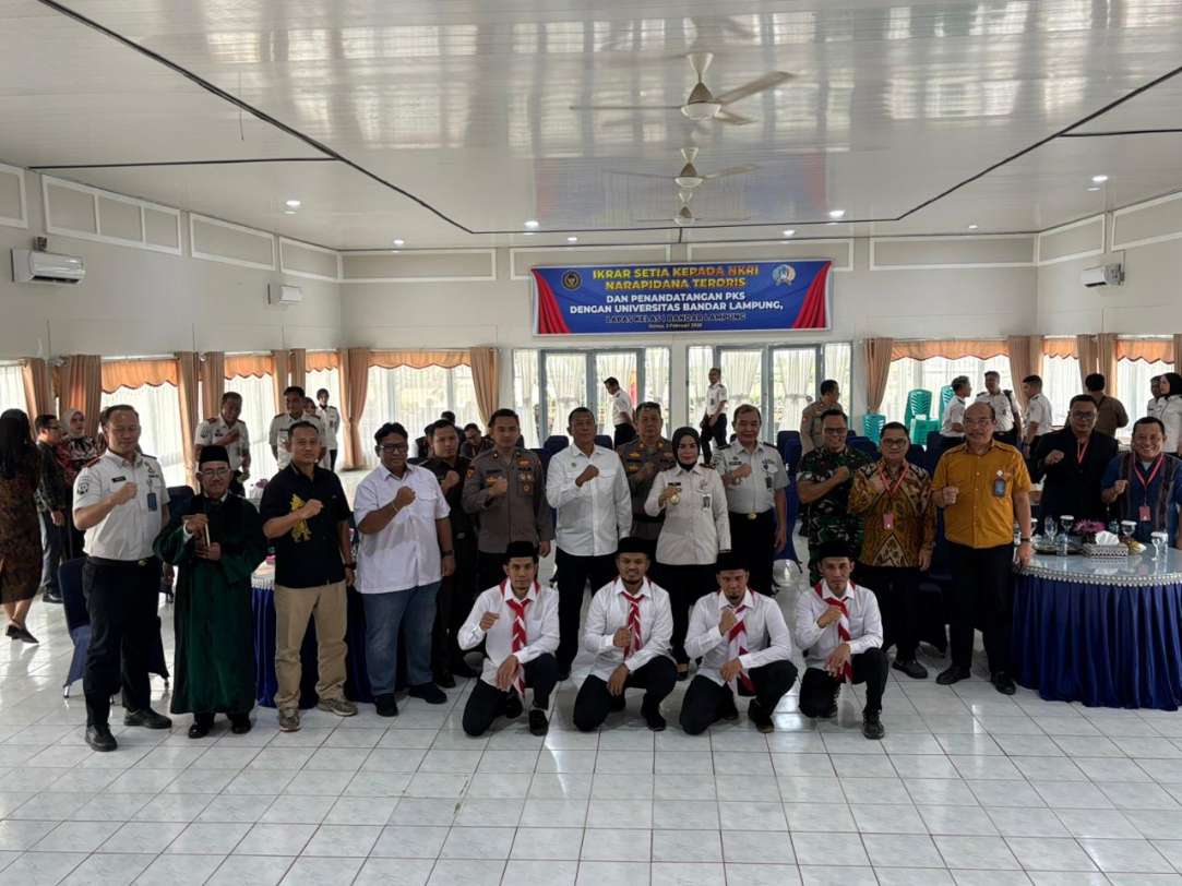 Bandar Lampung – Kepala Rumah Tahanan Negara (Karutan) Kelas I Bandar Lampung, Tri Wahyu Santosa menghadiri kegiatan Ikrar Setia kepada Negara Kesatuan Republik Indonesia (NKRI) oleh Narapidana Teroris yang dirangkaikan dengan Penandatanganan Perjanjian Kerja Sama (PKS) antara Lapas Kelas I Bandar Lampung dengan Universitas Bandar Lampung (UBL) pada, Selasa (03/02/2026)