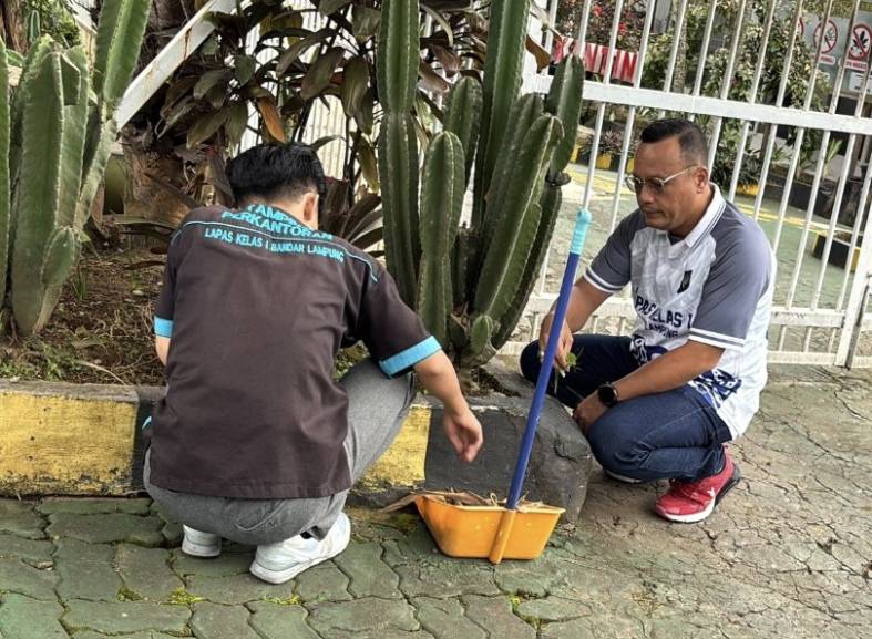 Petugas dan Warga Binaan Lapas Kelas I Bandar Lampung Gelar Kerja Bakti Guna Rawat Lingkungan