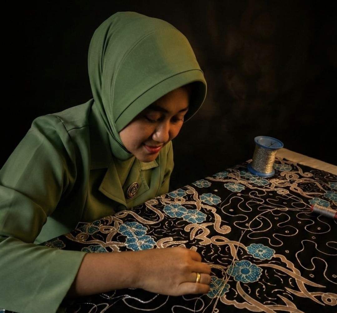 Lampung — Dibalik seragam putihnya sebagai bidan, Asri menyimpan ketekunan lain yang tak kalah mulia. Di sela tugasnya melayani masyarakat di puskesmas, ia merajut mimpi melalui helai-helai benang emas yang menghiasi kain tradisional khas Lampung, tapis.