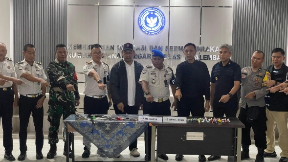 Palembang — Rumah Tahanan Negara (Rutan) Kelas I Palembang gelar pelaksanaan razia terpadu bersama Patnal Kanwil dan Satresnarkoba beserta Babinsa TNI dan Polri dalam rangka Pencegahan Peredaran Narkoba dan Kepemilikan Handphone serta test urine secara acak terhadap warga binaan pada, Sabtu 18 April 2026.
