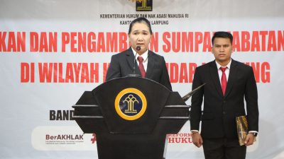 Betiklampung.com (SMSI), Bandarlampung — Melaksanakan Pelantikan dan Pengambilan Sumpah Jabatan Notaris di Aula Kantor Wilayah Kementerian Hukum dan…