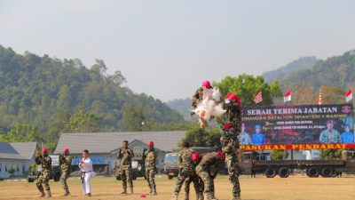 Betiklampung.com (SMSI), Pesawaran — Komandan Brigade Infanteri (Danbrigif) 4 Mar/BS Kolonel Mar Bob Osianto Siregar memimpin upacara Serah…