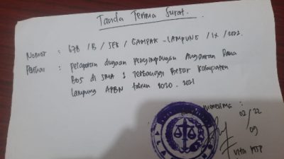 Betiklampung.com (SMSI), Lampung — LSM Gabungan Mahasiswa Pemberantas Korupsi (LSM Gamapak) melaporkan Kepala SMAN 1 Terbanggi Besar, Lampung…