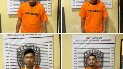 Betiklampung.com (SMSI), Bandarlampung – Tim Tekab 308 dan Unit Ranmor Satreskrim Polresta Bandar Lampung berhasil membekuk 4 dari…