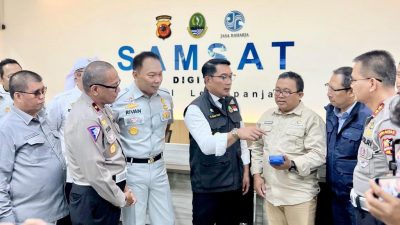 Betiklampung.com (SMSI), Bandung — Direktur Utama Jasa Raharja Rivan A. Purwantono bersama Gubernur Jawa Barat Ridwan Kamil, Kakorlantas…